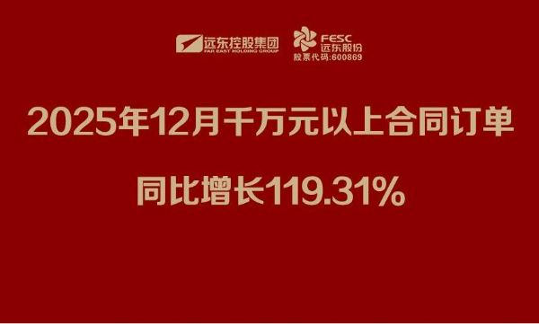 证券时报网讯:1月5日晚间,远东股份(600869)发布公告称,2025年12月,公司收到子公司中标/签约千万元以上合同订单合计为人民币30.69亿元,同比增长119.31%,环比增长28.81%。1—12月,公司收到子公司中标/签约千万元以上合同订单合计为281.38亿元,同比增长14.42%,创历史新高。